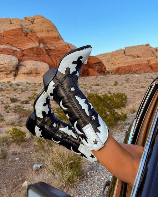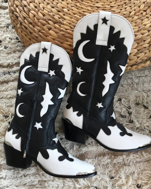 White leather applique and star & moon cut out's with Black Sheep's leather